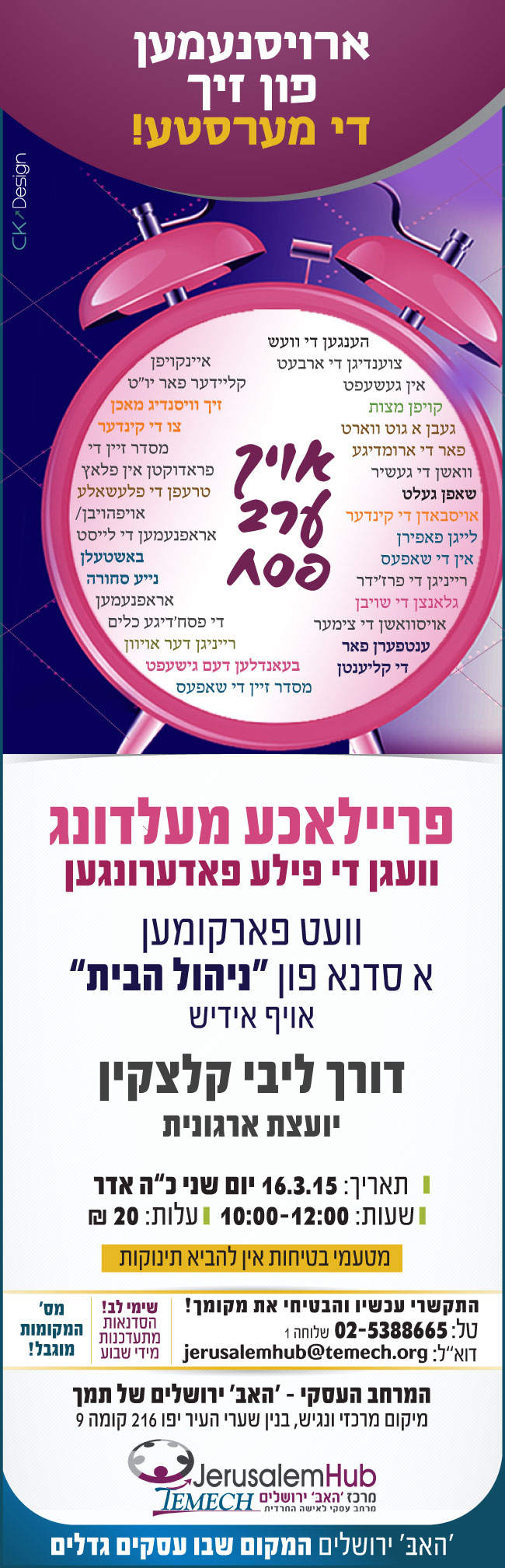 סדנה לניהול זמן באידיש – הגב' ליבי קלצקין